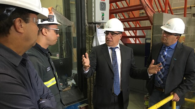 François Legault et son candidat François Tremblay ont visité l'entreprise Groupe Réfraco. Photo : Radio-Canada/Rémi Tremblay