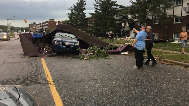 Les vents violents de vendredi on fait beaucoup de dégâts dans le secteur du boulevard de la Cité-des-Jeunes, à Gatineau. Photo : Radio-Canada/Toni Choueiri