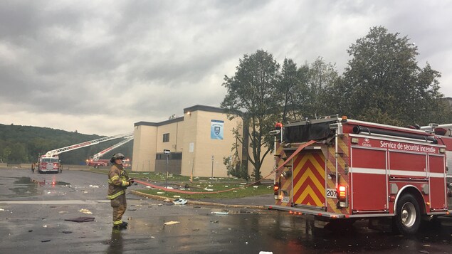 Les pompiers de Gatineau combattent un incendie à l'École Mont-Bleu. Photo : Radio-Canada/Kim Vallière