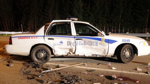 L'autopatrouille que conduisait la policière Isabelle Morin au moment de la collision avec le motocycliste Jessy Drolet. Photo : Radio-Canada