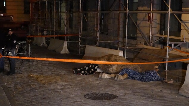 Le cheval est mort alors qu'il tirait une calèche dans le Vieux-Montréal. Photo : Radio-Canada/Mathieu Daniel Wagner
