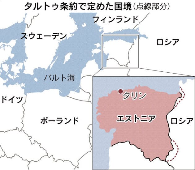 【モスクワ=石川陽平】旧ソ連を構成していた東欧のエストニアとロシアとの国境問題が再び浮上してきた。エストニアのレインサル外相は日本経済新聞に、両国が2014年に調印した国境画定条約の批准を見送る方針を表明した。背景にはエストニアが加盟する欧州連合(EU)とロシアの関係悪化のほか、第2次世界大戦を巡る歴史認識の違いもある。北方領土を巡る日本とロシアの問題にも類似する。