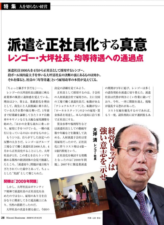 リーマン・ショック後の不況下で「派遣切り」や「雇い止め」が話題になり、09年問題も注目を集めた。レンゴーで対象となる派遣社員は約1000人。私は「この際、まとめて…