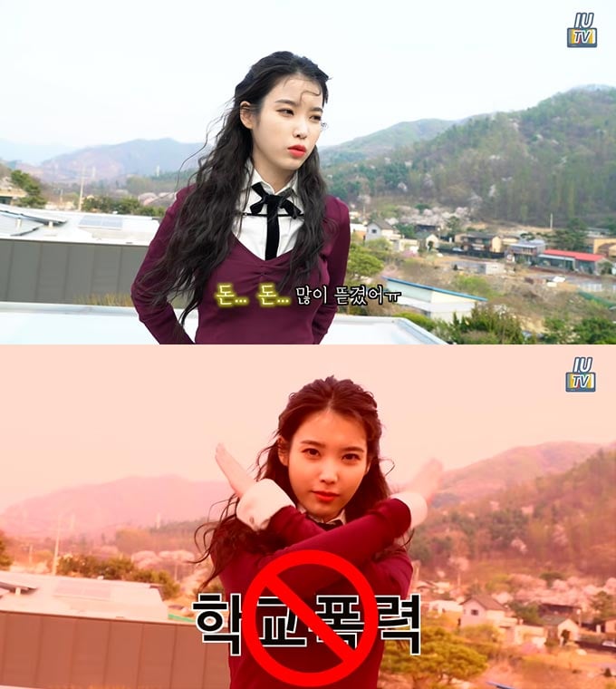그러면서 아이유는 손으로 '엑스'(X)자를 크게 그려보이며 학교폭력을 절대 저지르면 안 된다는 메시지를 전해 눈길을 끌었다.