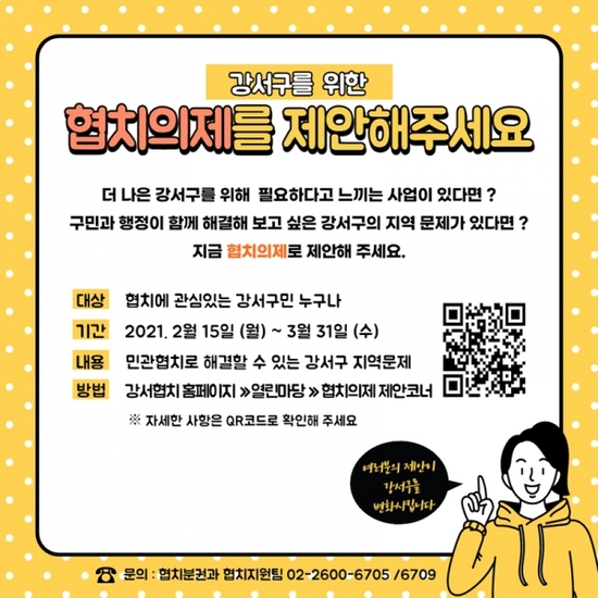 제안은 오는 31일까지 ‘협치강서 홈페이지-열린마당-협치의제 제안코너’에서 할 수 있다.