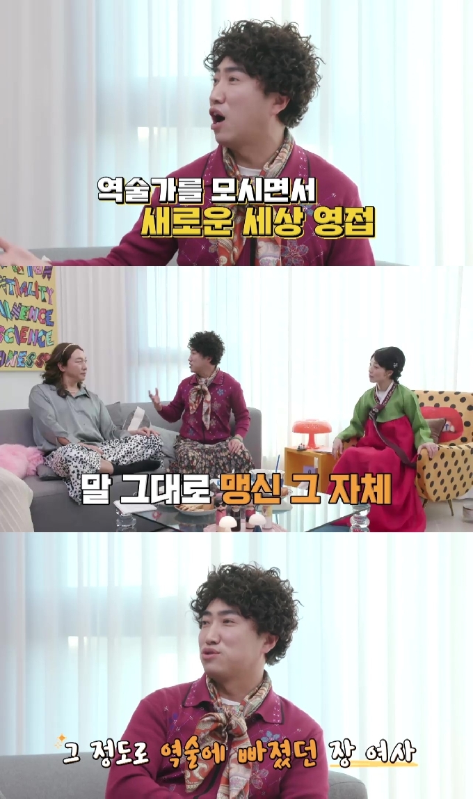 그는 "매주 토요일마다 점집 일을 도와줬다. 방 옷장에 내 한복이 있었다. 한복을 입고 카운터에 앉아서 일했다"며 "사람이 들어와서 '어? 장동민씨가'라고 하는데도 안내를 했다. 방송하며 잘 나갈 때였는데 그 정도까지 빠진 적이 있었다"고 설명한다.
